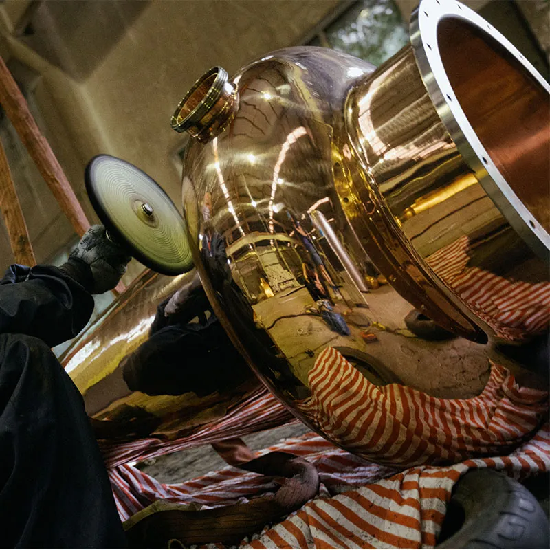 Ручка мастера наделяет каждый перегонный куб уникальными деталями и температурой. Неровности поверхности и тонкие вариации размеров незаметно влияют на процесс дистилляции. Уникальная форма позволяет создавать неповторимые вариации в потоке и конденсации пара, формируя богатую палитру вкусов — от интенсивных фруктовых нот до глубоких пряных оттенков виски, каждая нота выгравирована на истории мастера.